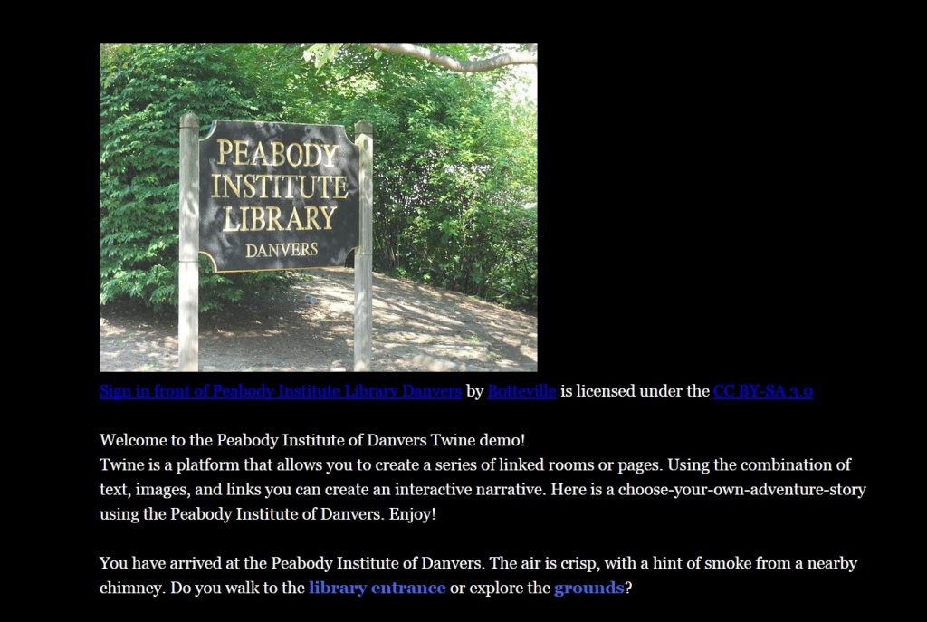 Here is a sample story using the Peabody Institute of Danvers as the backdrop.