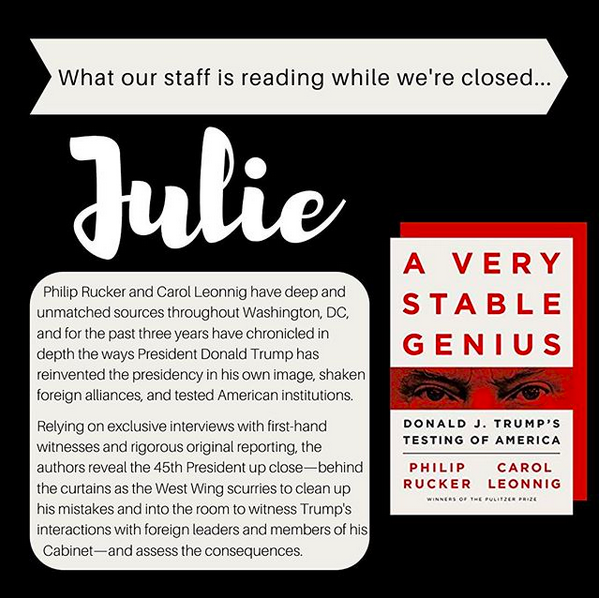 What our staff is reading while we’re closed…