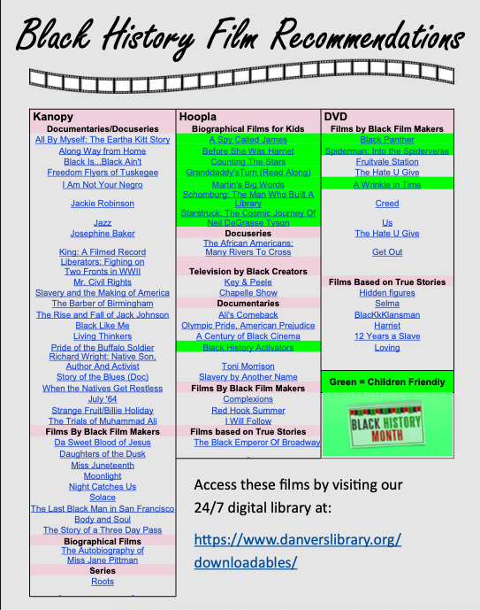 Thanks to Assistant Librarian Jonathan for compiling this terrific all ages list of films, documentaries and series!
