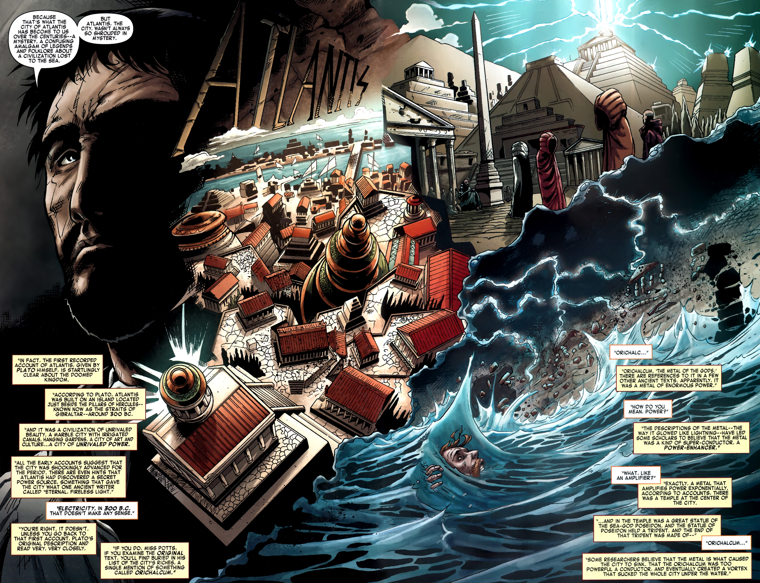 But what if you don’t know much about Tony Stark or his superhero alter ego Iron Man? All things considered, that may not prove to be as much of a hindrance as you might think, because Noir has a distinctly Jules Verne/Edgar Rice Burroughs nostalgic feel about it that can be enjoyed entirely on its own merits. When it comes down to it, Noir is an adventure story that pits intrepid thrill seekers (or people who are paid to babysit the boss in the guise of intrepid thrill seekers) against bad guys determined to find buried cities and long-lost relics before our heroes can. It’s all very: ‘In the race to find Atlantis, will Tony Stark be able to keep the mythical city’s exhorted power out of the hands of the villainous Baron Zemo? And will he be able to save the dame as well as the day? Find out in the next thrilling adventure featuring Tony Stark and his crew!’ Only the whole adventure is wrapped up in this one installment.